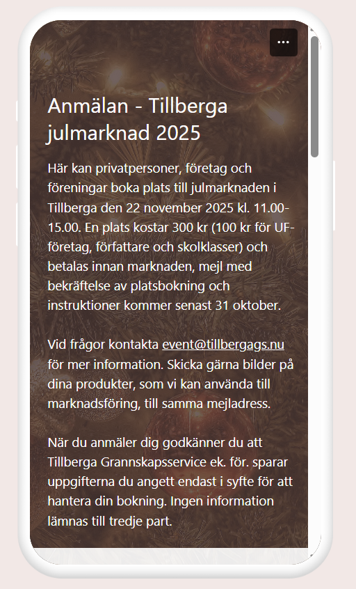 Välkommen till en traditionell julmarknad i centrala Tillberga den 22 november klockan 11-15.